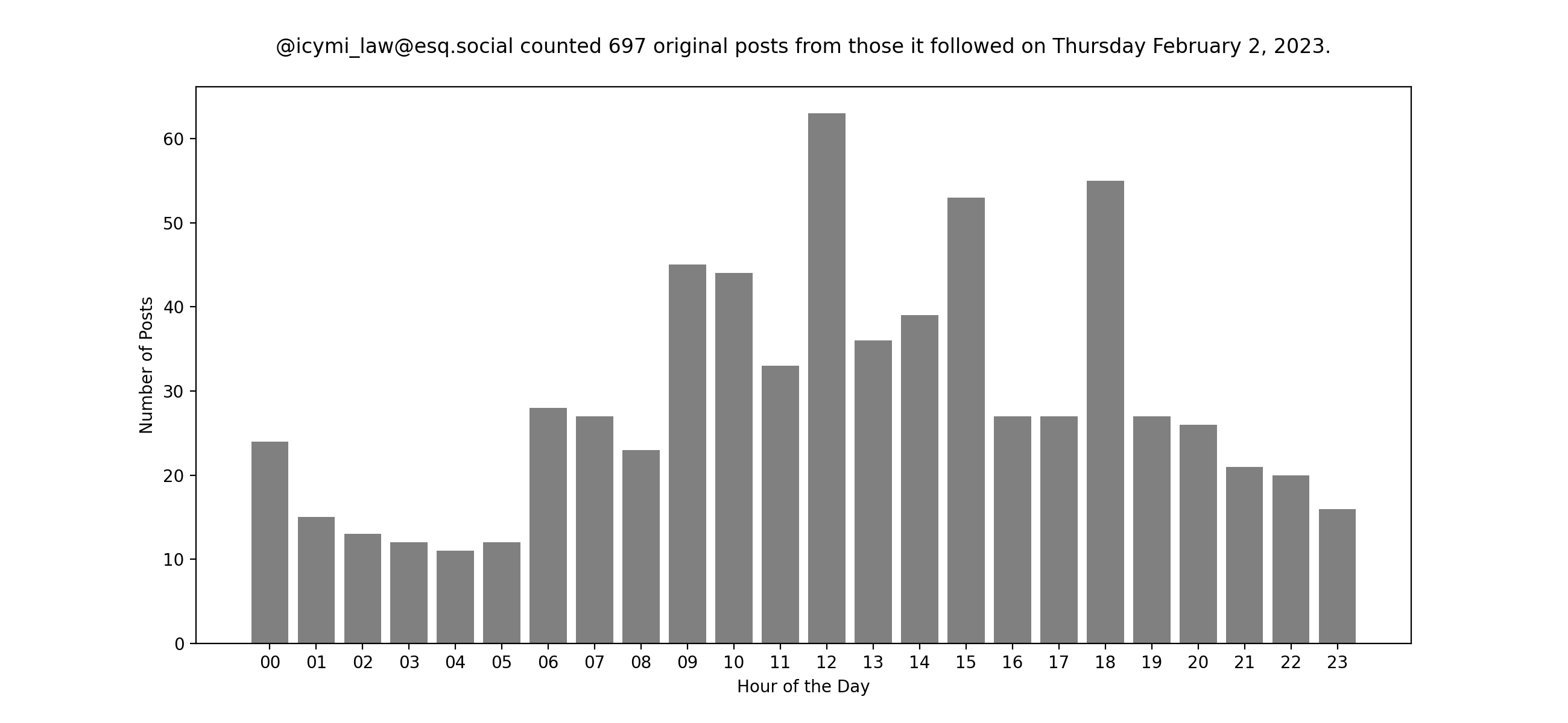 Of course, these insights are all thanks to a community of users, namely the folks I follow over at @icymi_law@esq.social. For fun, here's a look at their posting traffic yesterday. I like trying to create stories about the daily ups and downs. What is that bump? ;)Search