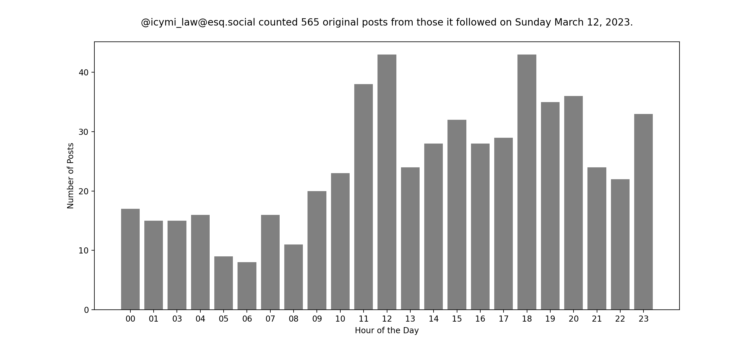Of course, these insights are all thanks to a community of users, namely the folks I follow over at @icymi_law@esq.social. For fun, here's a look at their posting traffic yesterday. I like trying to create stories about the daily ups and downs. What is that bump? ;)Search