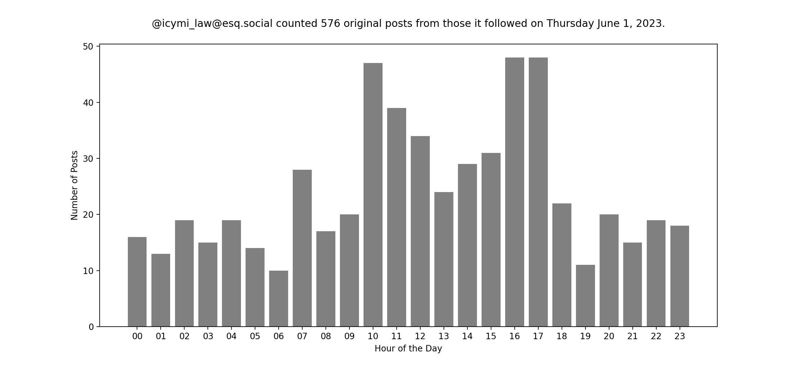 Of course, these insights are all thanks to a community of users, namely the folks I follow over at @icymi_law@esq.social. For fun, here's a look at their posting traffic yesterday. I like trying to create stories about the daily ups and downs. What is that bump? ;)Search