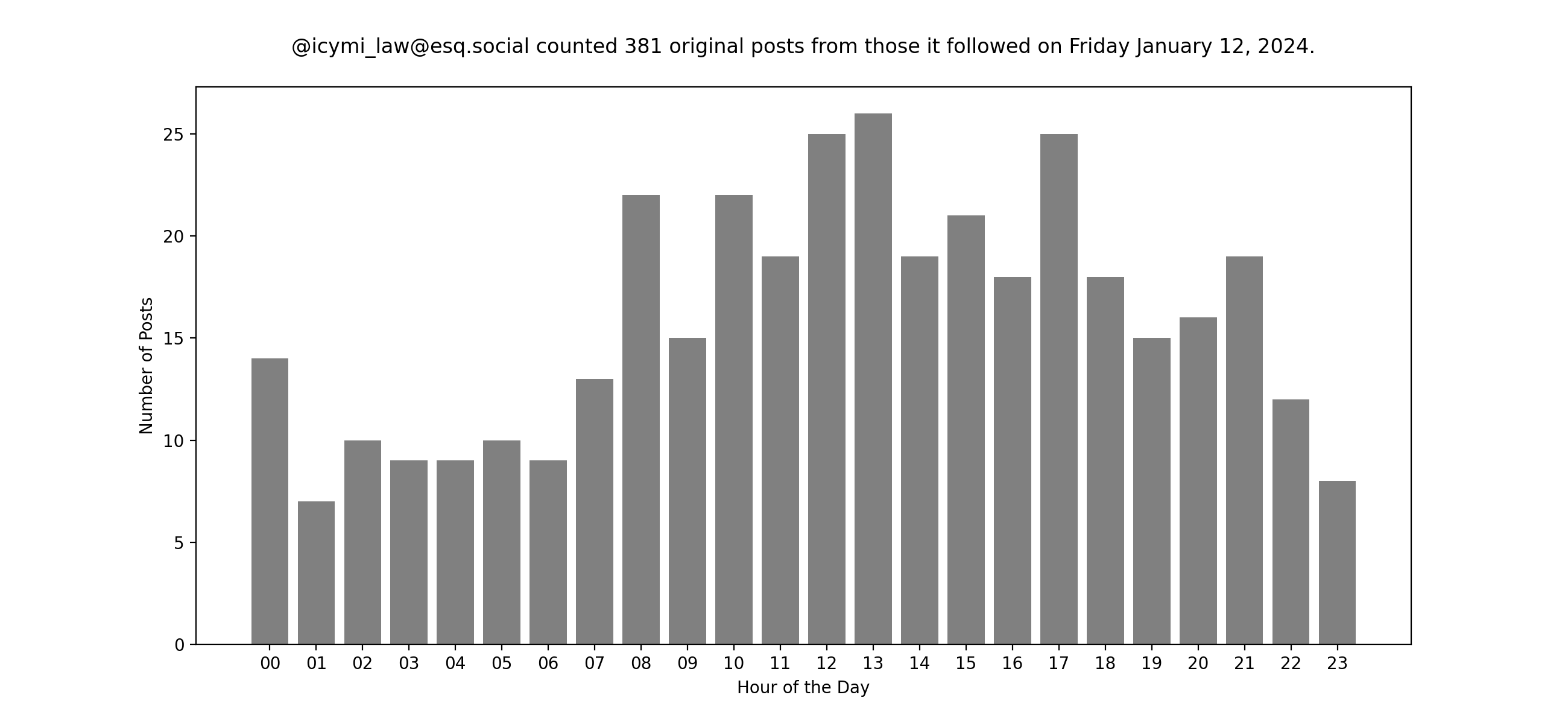 Of course, these insights are all thanks to a community of users, namely the folks I follow over at @icymi_law@esq.social. For fun, here's a look at their posting traffic yesterday. I like trying to create stories about the daily ups and downs. What is that bump? ;)Search
