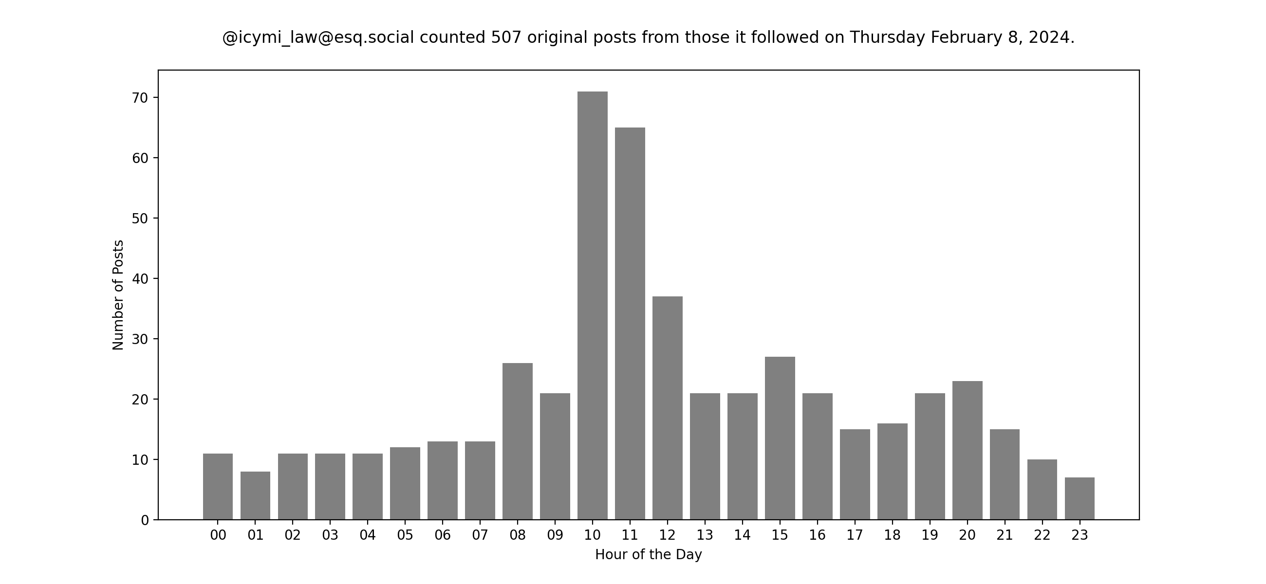Of course, these insights are all thanks to a community of users, namely the folks I follow over at @icymi_law@esq.social. For fun, here's a look at their posting traffic yesterday. I like trying to create stories about the daily ups and downs. What is that bump? ;)Search