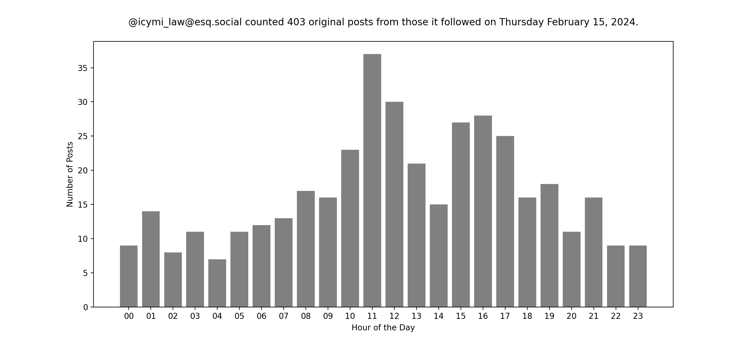 Of course, these insights are all thanks to a community of users, namely the folks I follow over at @icymi_law@esq.social. For fun, here's a look at their posting traffic yesterday. I like trying to create stories about the daily ups and downs. What is that bump? ;)Search