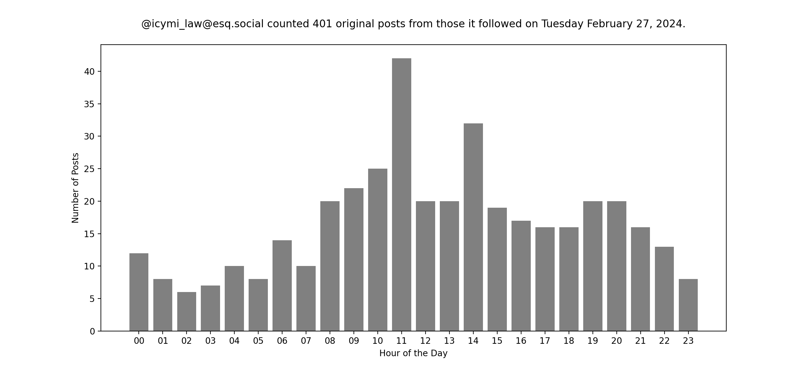 Of course, these insights are all thanks to a community of users, namely the folks I follow over at @icymi_law@esq.social. For fun, here's a look at their posting traffic yesterday. I like trying to create stories about the daily ups and downs. What is that bump? ;)Search