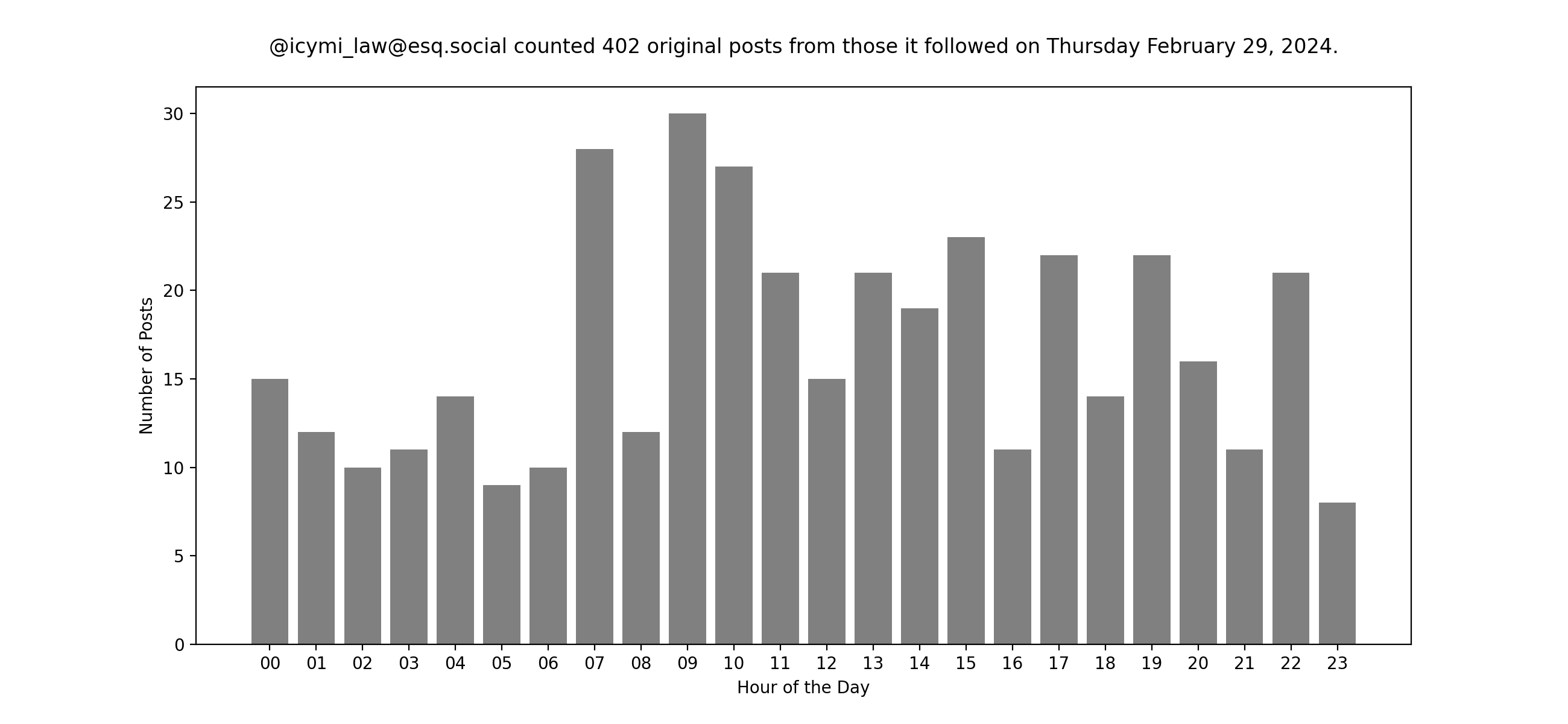 Of course, these insights are all thanks to a community of users, namely the folks I follow over at @icymi_law@esq.social. For fun, here's a look at their posting traffic yesterday. I like trying to create stories about the daily ups and downs. What is that bump? ;)Search