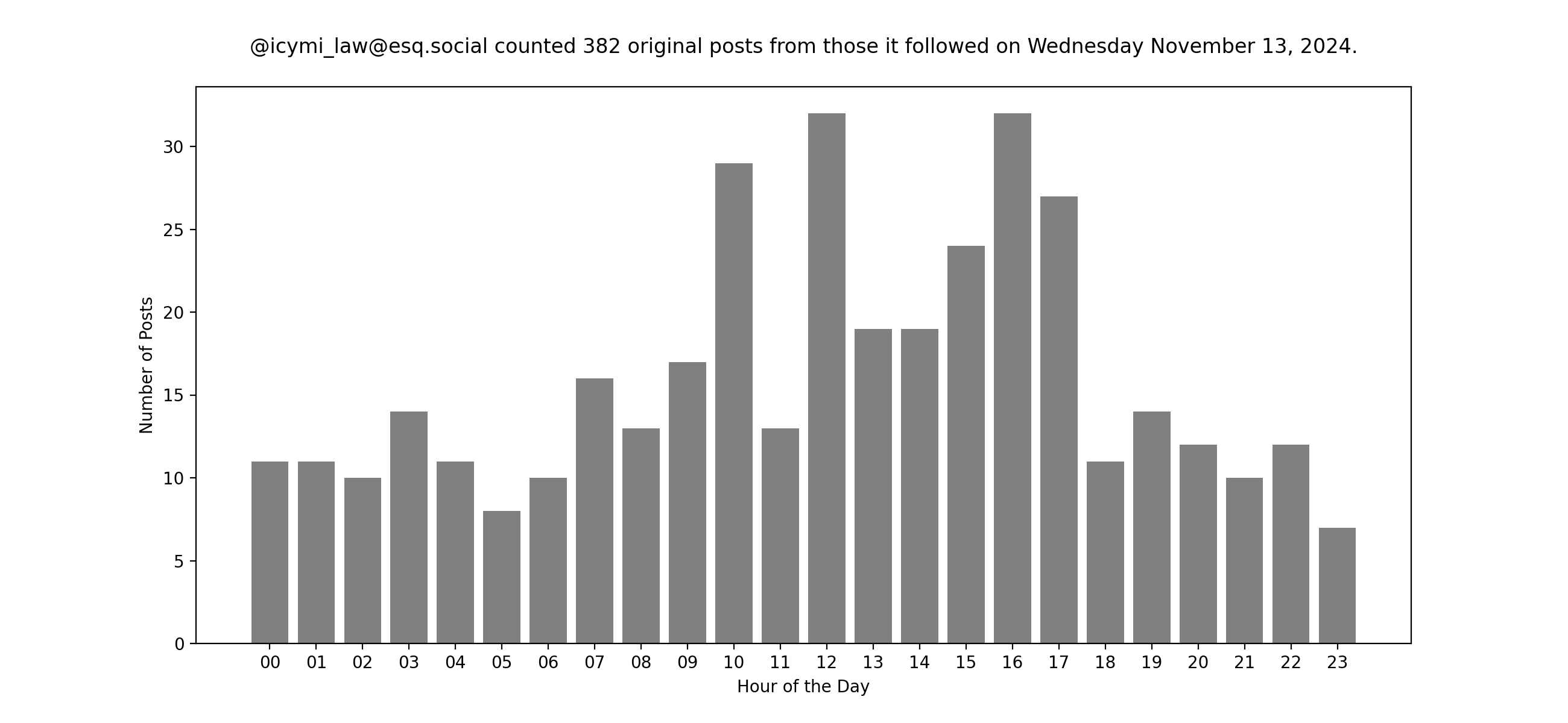 Of course, these insights are all thanks to a community of users, namely the folks I follow over at @icymi_law@esq.social. For fun, here's a look at their posting traffic yesterday. I like trying to create stories about the daily ups and downs. What is that bump? ;)Search