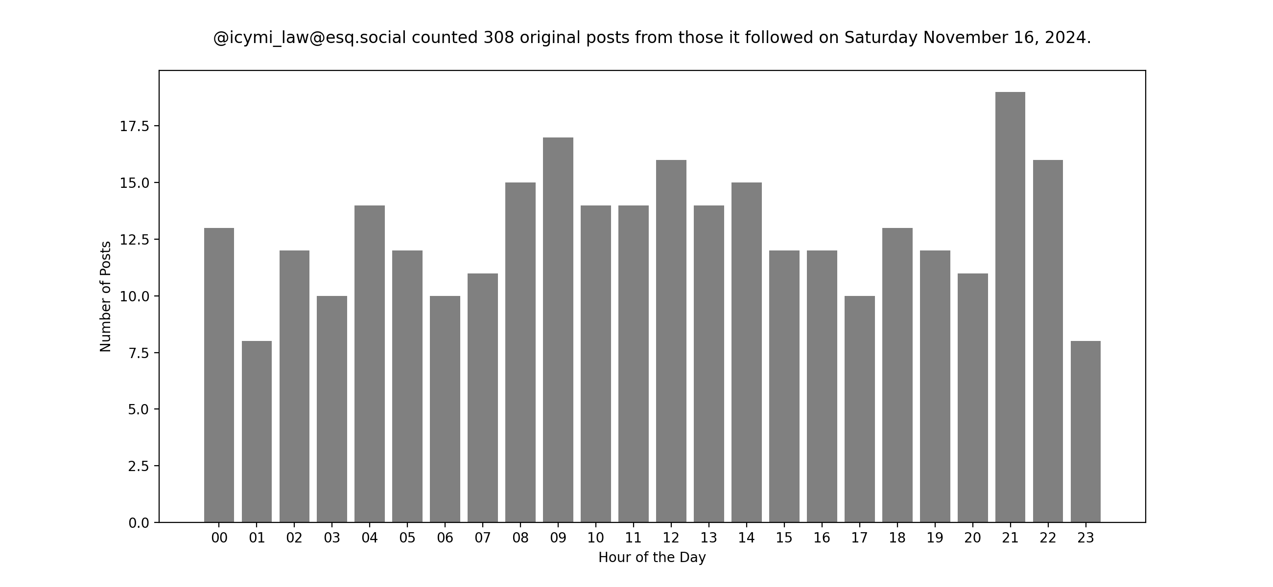 Of course, these insights are all thanks to a community of users, namely the folks I follow over at @icymi_law@esq.social. For fun, here's a look at their posting traffic yesterday. I like trying to create stories about the daily ups and downs. What is that bump? ;)Search